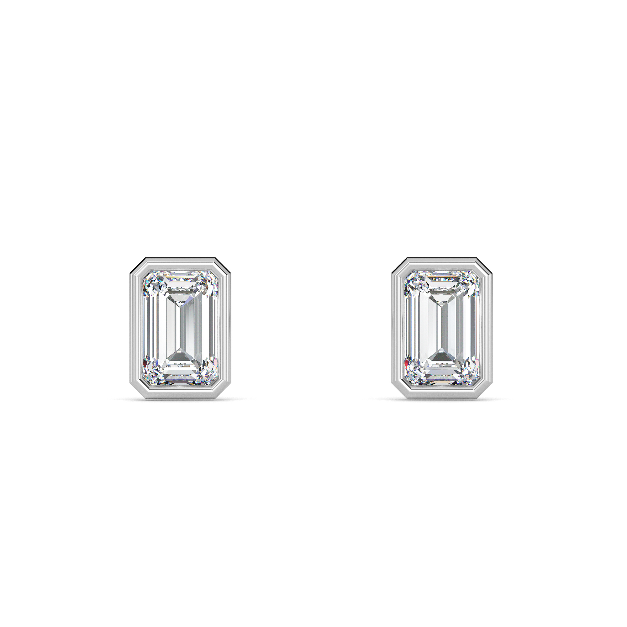 Emerald-cut beauty encased in a minimalist bezel for refined charm.