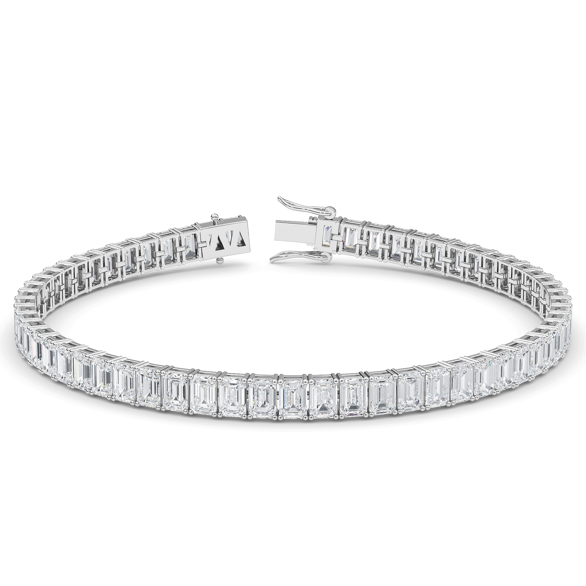 Make a statement with our emerald-cut lab-grown diamond tennis bracelet. Sleek lines and step-cut facets create an aura of refinement.