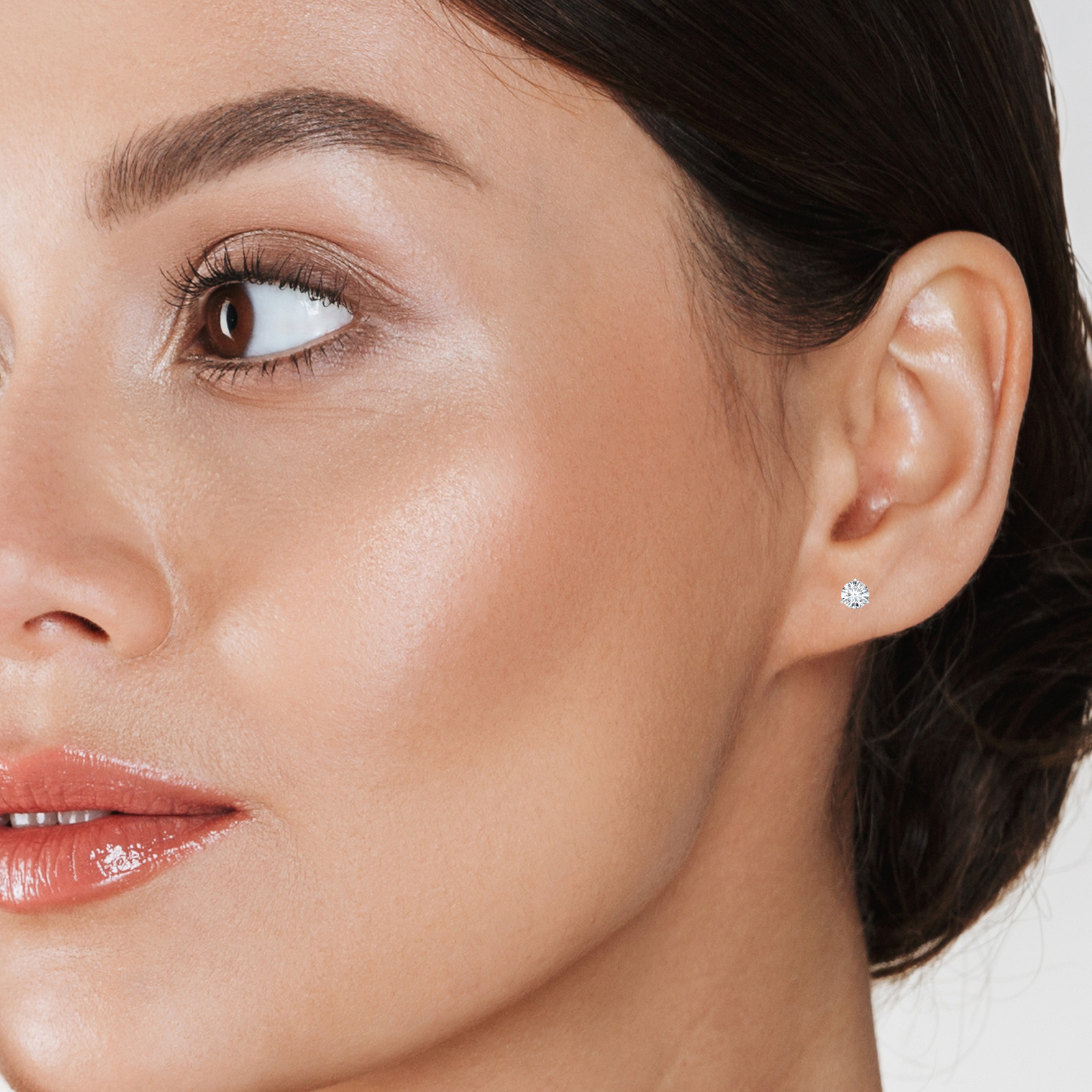 Make a statement with three-prong martini setting earrings. Designed to showcase brilliant lab-created diamonds, these earrings feature a sleek and elegant design that creates the illusion of the diamond floating on the earlobe.